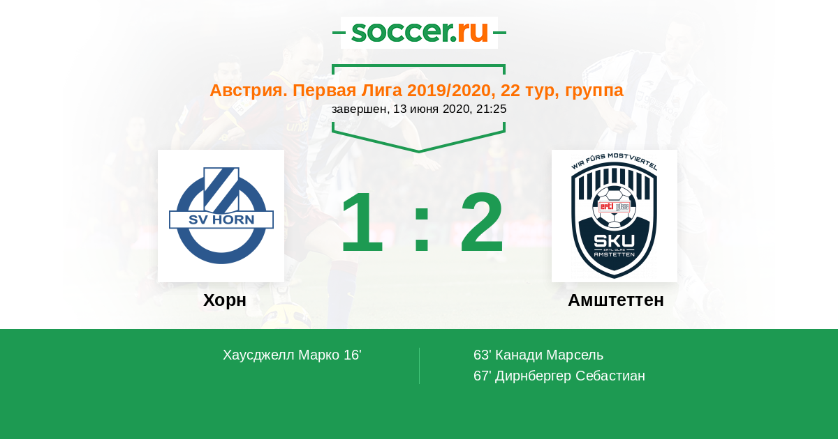 Хорн - Амштеттен: обзор матча 13 июня 2020