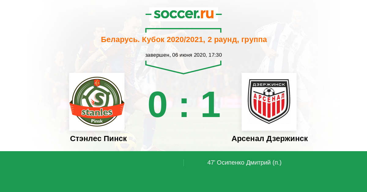Стэнлес Пинск - Арсенал Дзержинск: обзор матча 6 июня 2020