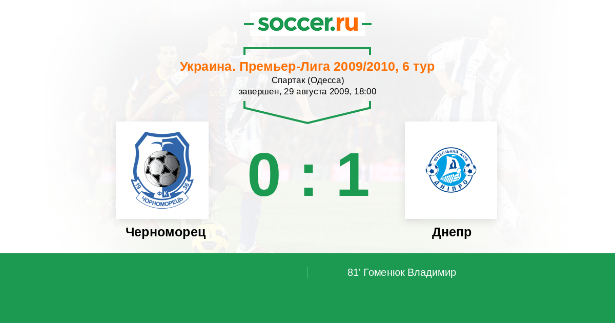 Черноморец - Днепр: обзор матча 29 августа 2009