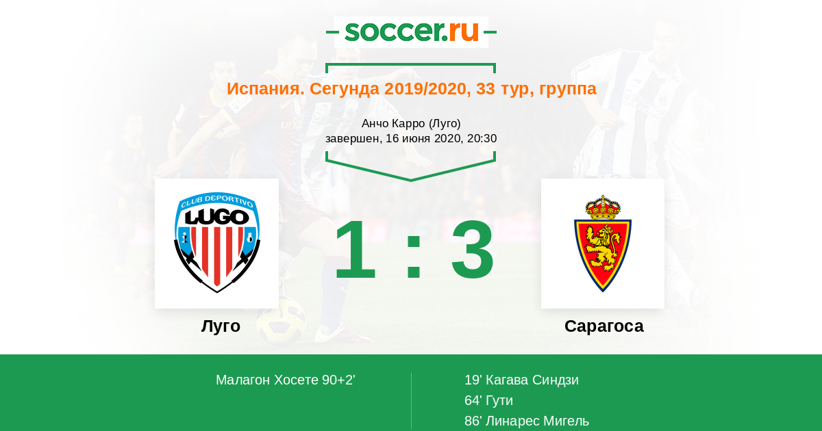 Луго - Сарагоса: обзор матча 16 июня 2020