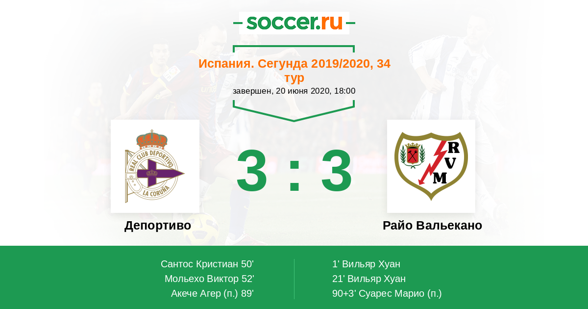 Депортиво - Райо Вальекано: обзор матча 20 июня 2020