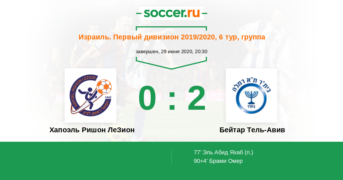 Хапоэль Ришон ЛеЗион - Бейтар Тель-Авив: обзор матча 29 июня 2020