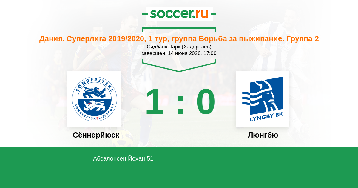 Сённерйюск - Люнгбю: обзор матча 14 июня 2020