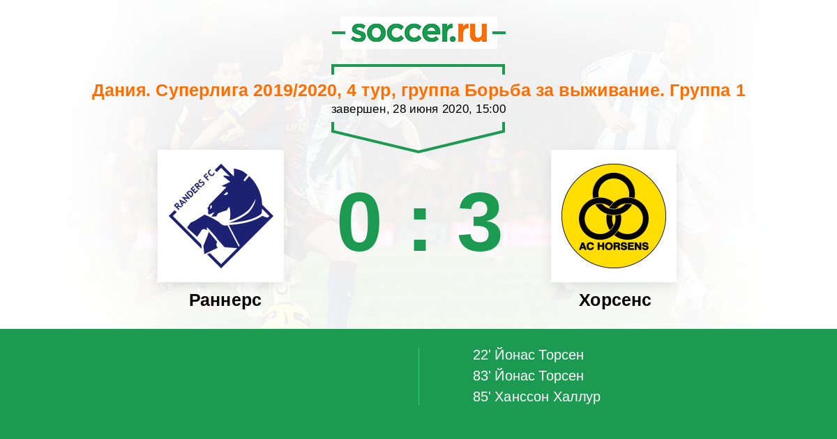 Раннерс - Хорсенс: обзор матча 28 июня 2020
