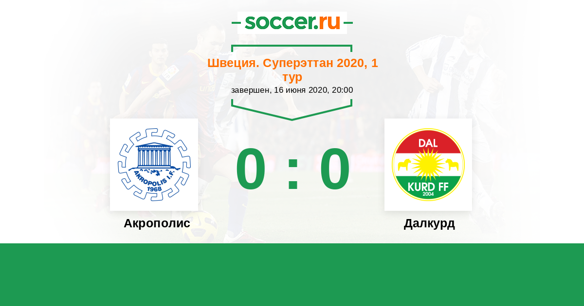 Акрополис - Далкурд: обзор матча 16 июня 2020