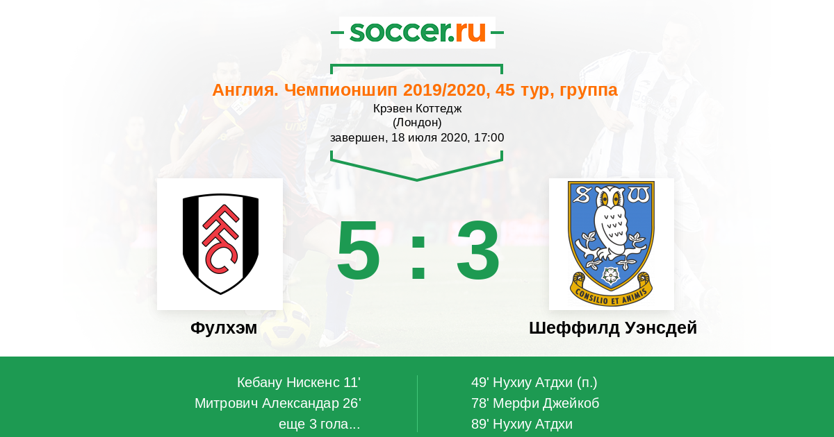 Фулхэм - Шеффилд Уэнсдей: обзор матча 18 июля 2020