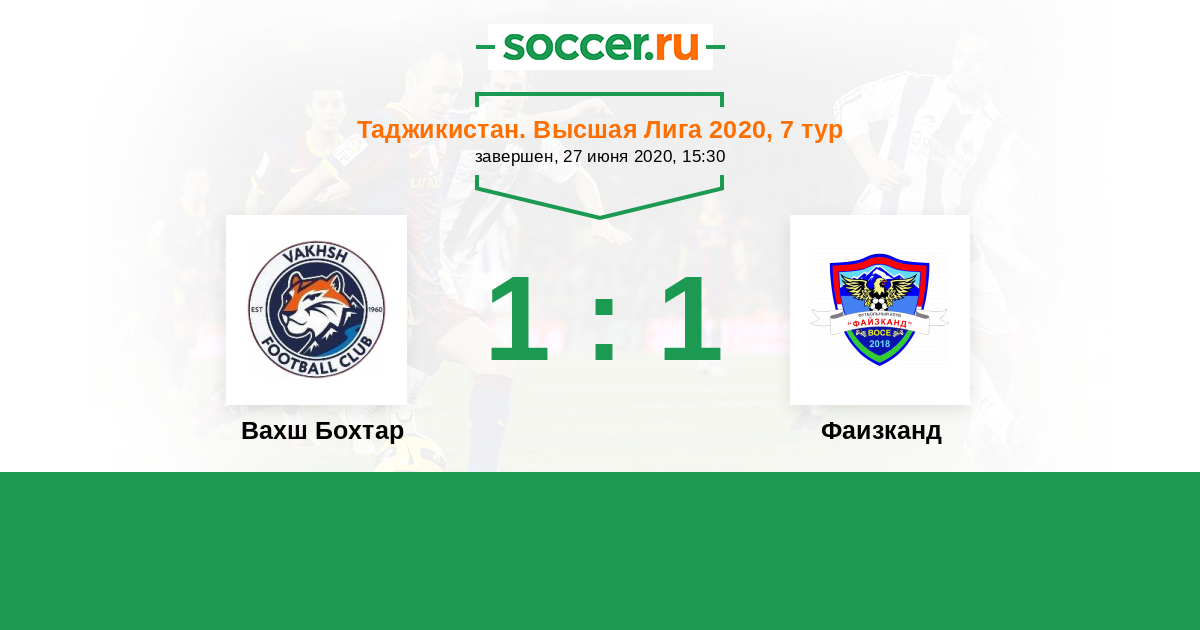 Вахш Бохтар - Фаизканд: обзор матча 27 июня 2020