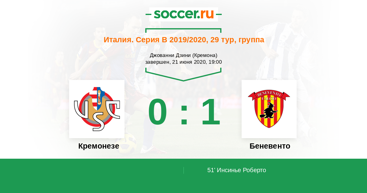 Кремонезе - Беневенто: обзор матча 21 июня 2020