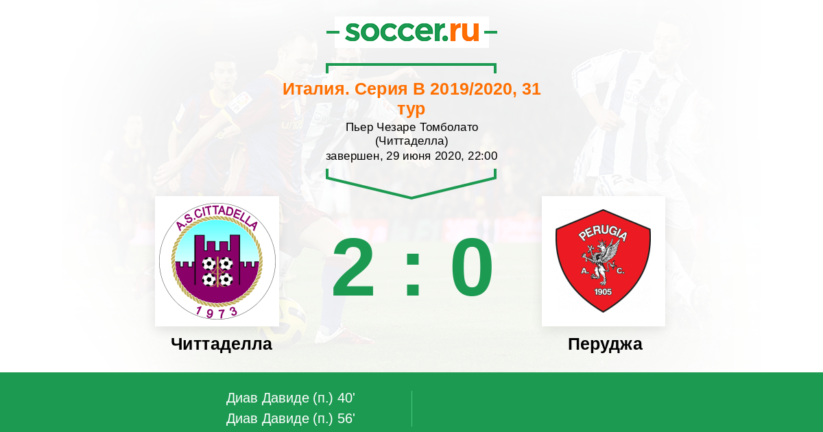 Читтаделла - Перуджа: обзор матча 29 июня 2020