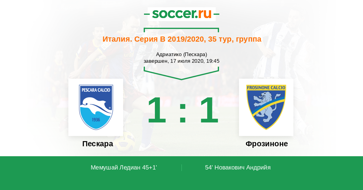 Пескара - Фрозиноне: обзор матча 17 июля 2020
