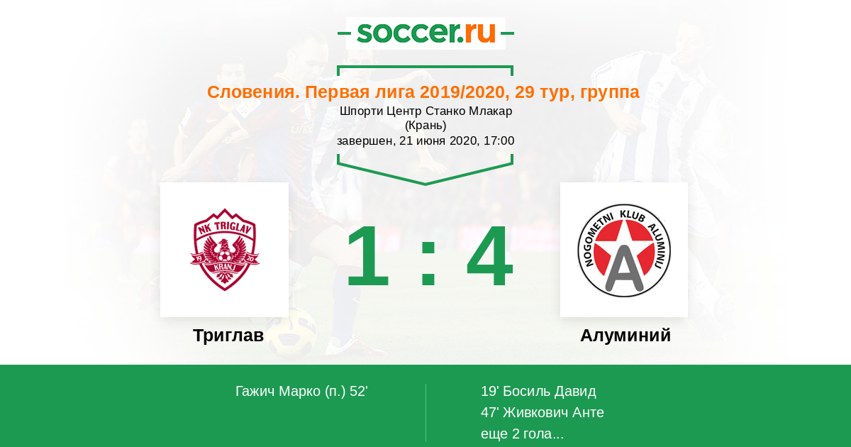 Триглав - Алуминий: обзор матча 21 июня 2020