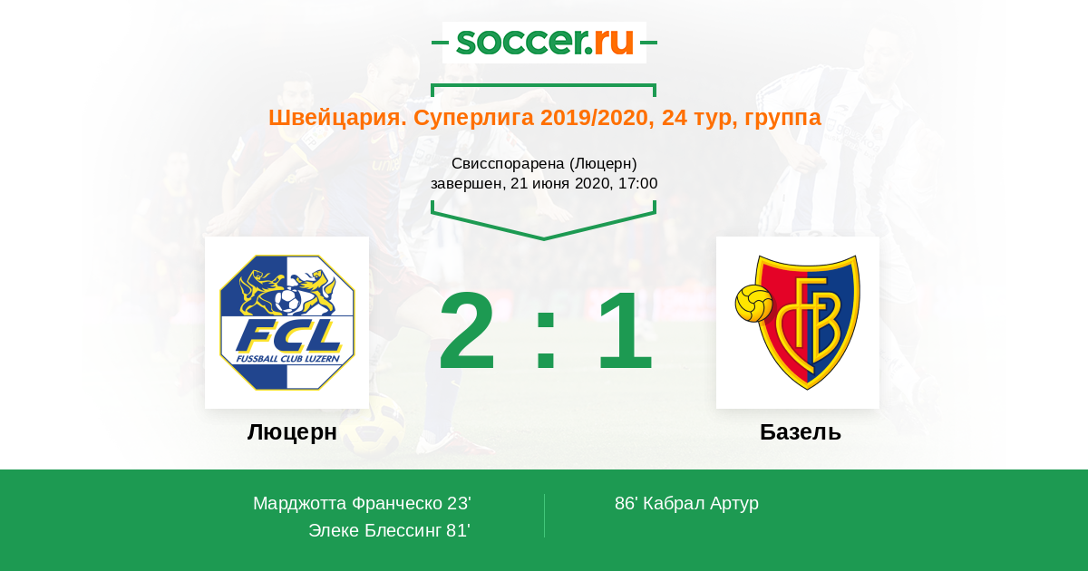 Люцерн - Базель: обзор матча 21 июня 2020