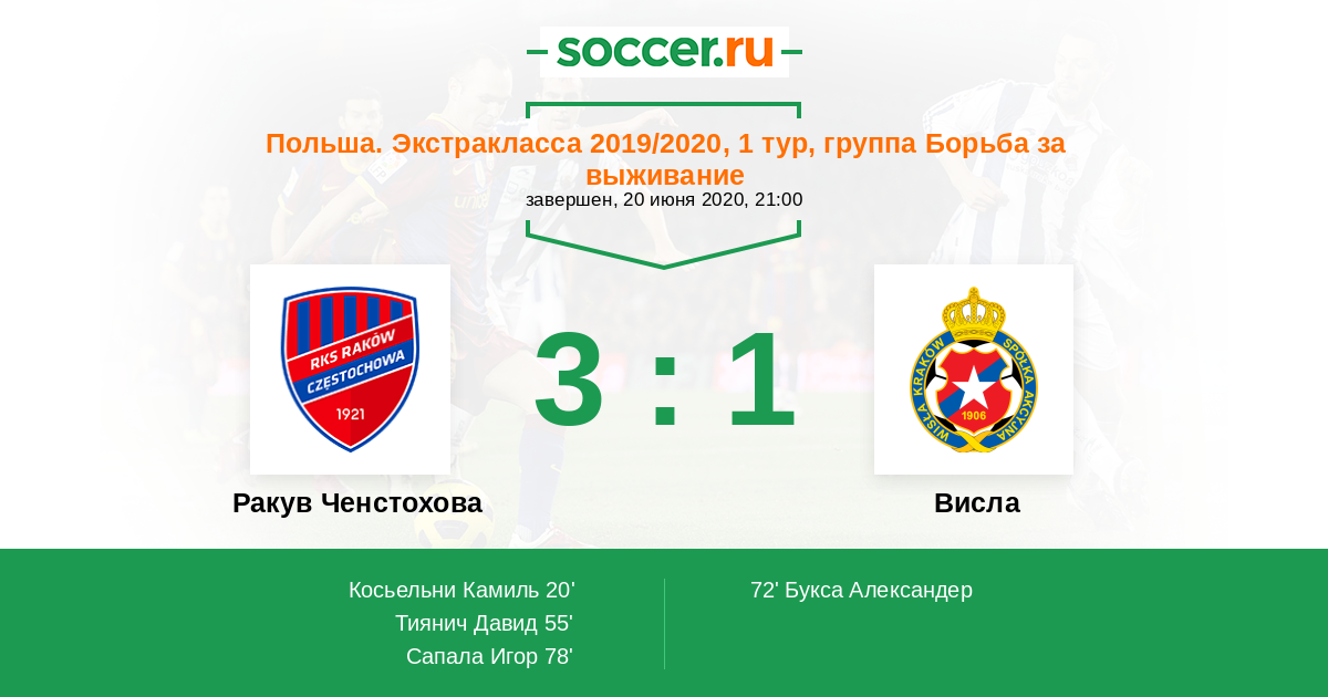 Ракув Ченстохова - Висла: обзор матча 20 июня 2020