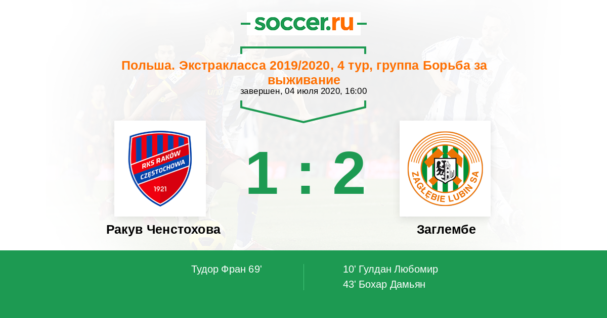 Ракув Ченстохова - Заглембе: обзор матча 4 июля 2020
