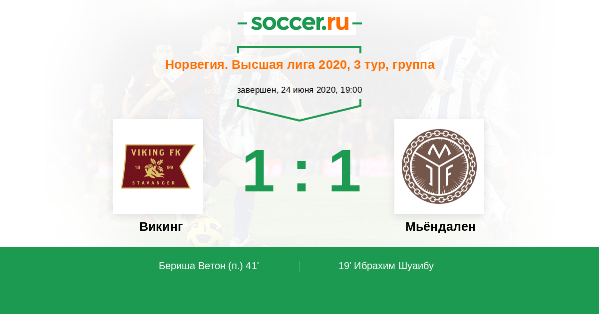Викинг - Мьёндален: обзор матча 24 июня 2020