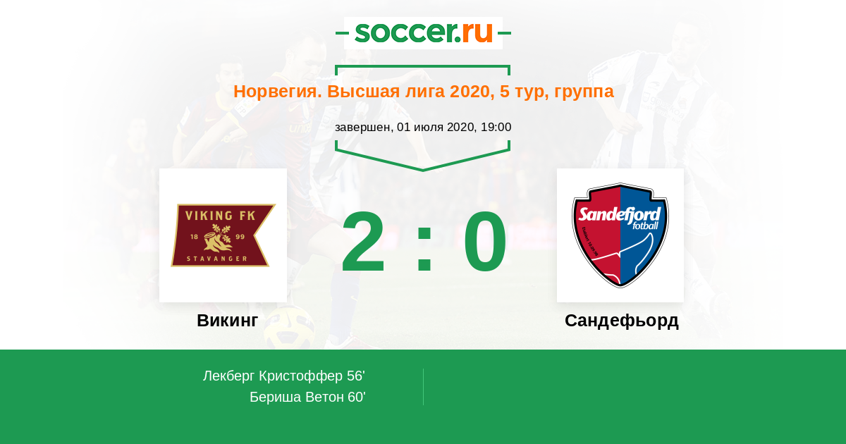 Викинг - Сандефьорд: обзор матча 1 июля 2020