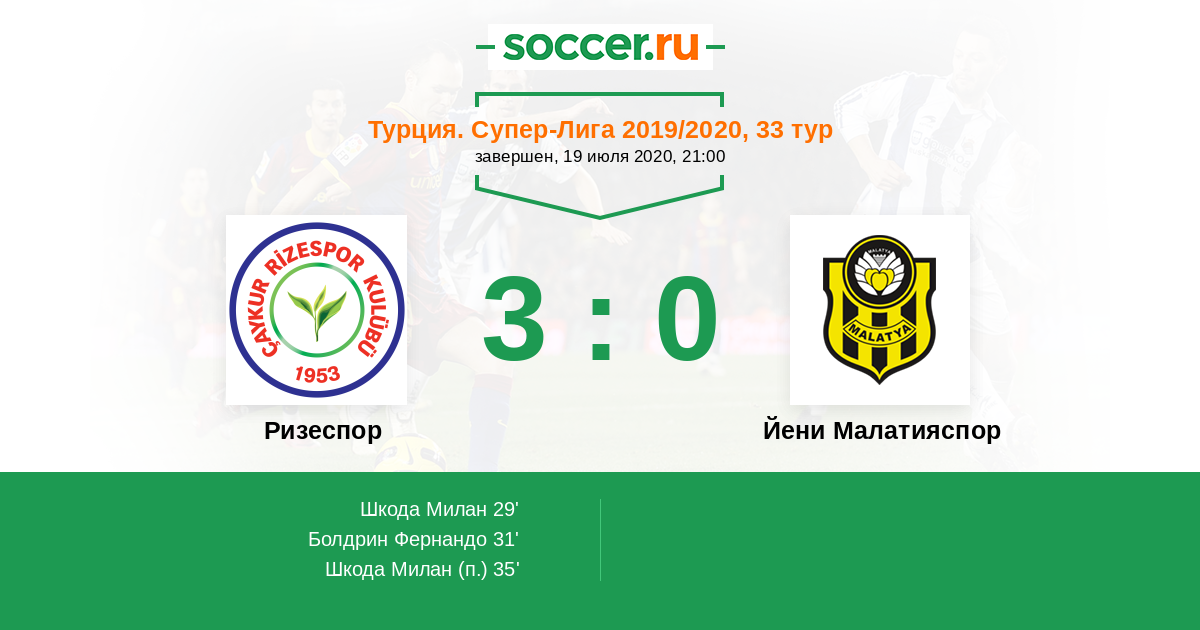 Ризеспор - Йени Малатияспор: обзор матча 19 июля 2020