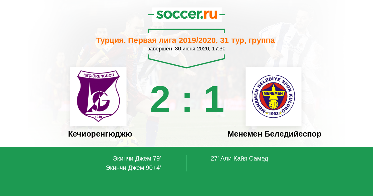 Кечиоренгюджю - Менемен Беледийеспор: обзор матча 30 июня 2020