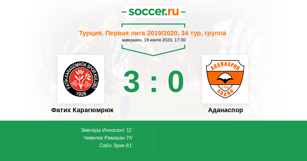 Фатих Карагюмрюк - Аданаспор: обзор матча 18 июля 2020