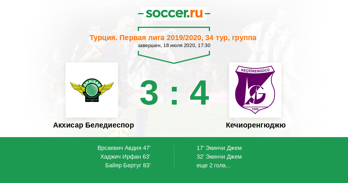 Акхисар Беледиеспор - Кечиоренгюджю: обзор матча 18 июля 2020