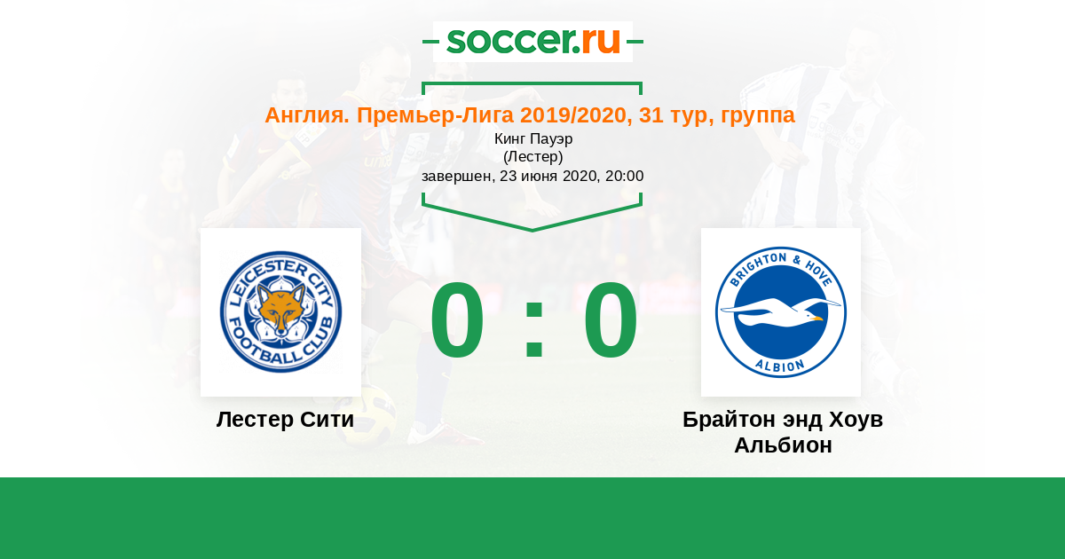 Лестер Сити - Брайтон энд Хоув Альбион: обзор матча 23 июня 2020