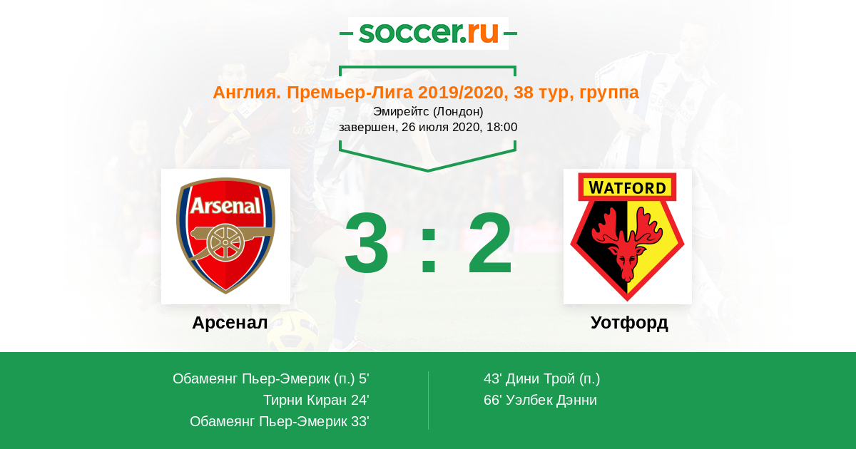 Арсенал - Уотфорд: обзор матча 26 июля 2020