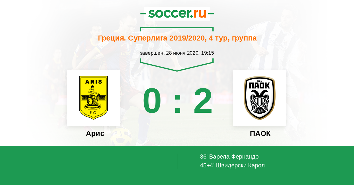 Арис - ПАОК: обзор матча 28 июня 2020