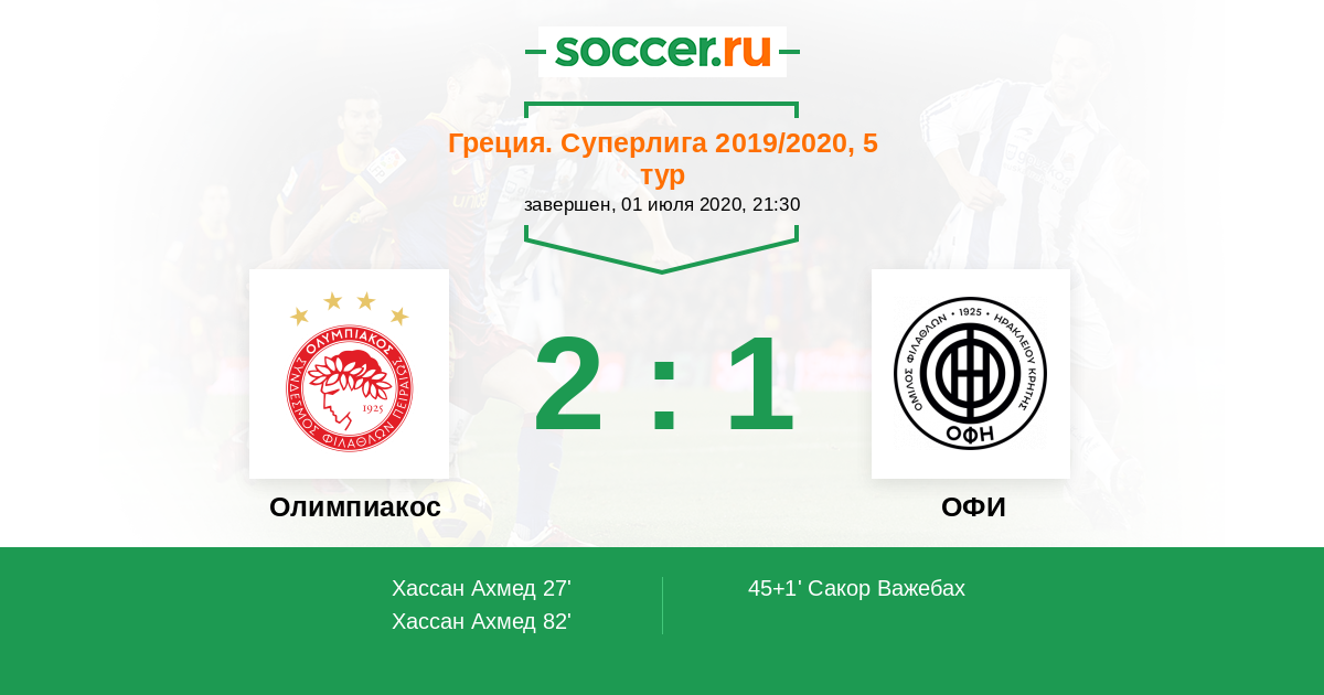 Олимпиакос - ОФИ: обзор матча 1 июля 2020