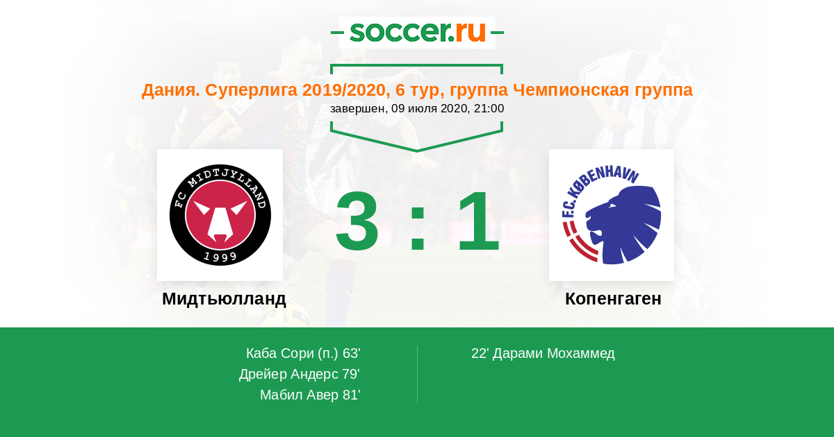 Мидтьюлланд - Копенгаген: обзор матча 9 июля 2020