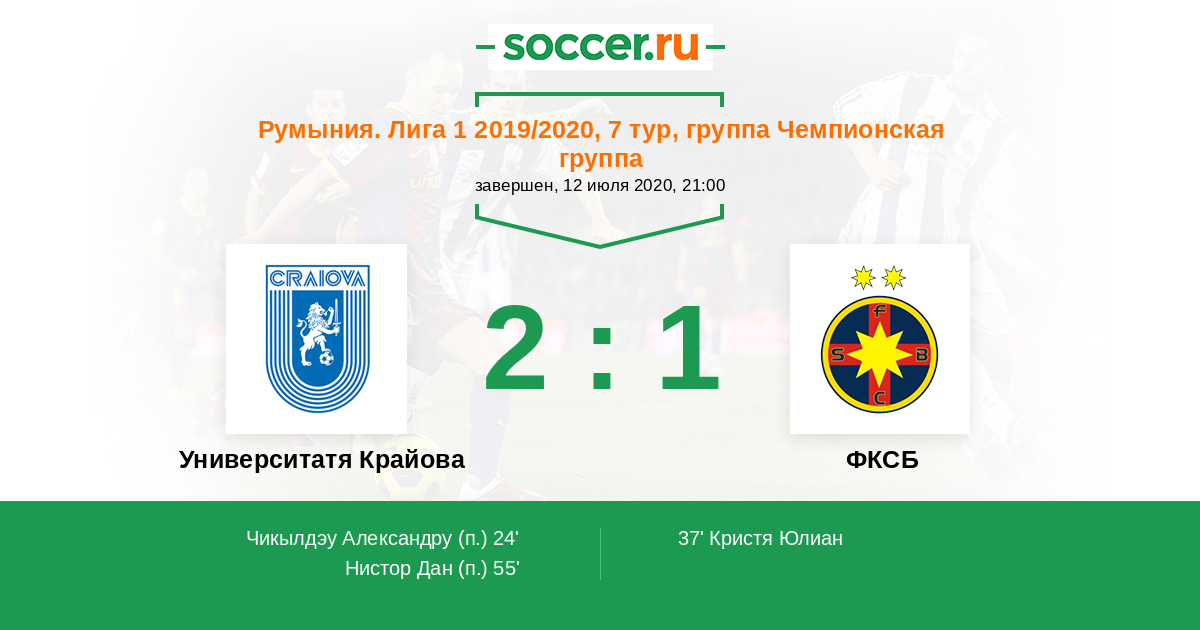 Университатя Крайова - ФКСБ: обзор матча 12 июля 2020