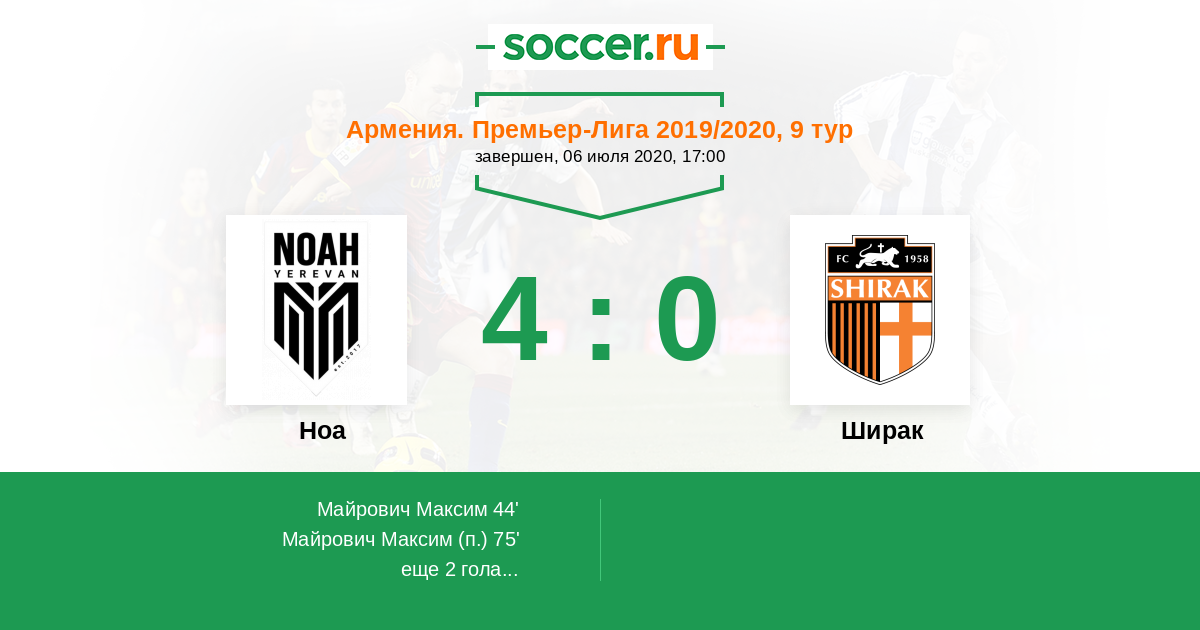 Ноа - Ширак: обзор матча 6 июля 2020
