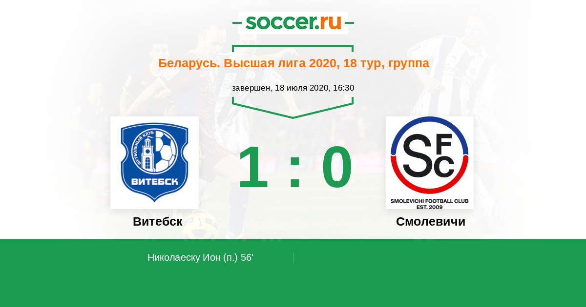 Витебск - Смолевичи: обзор матча 18 июля 2020