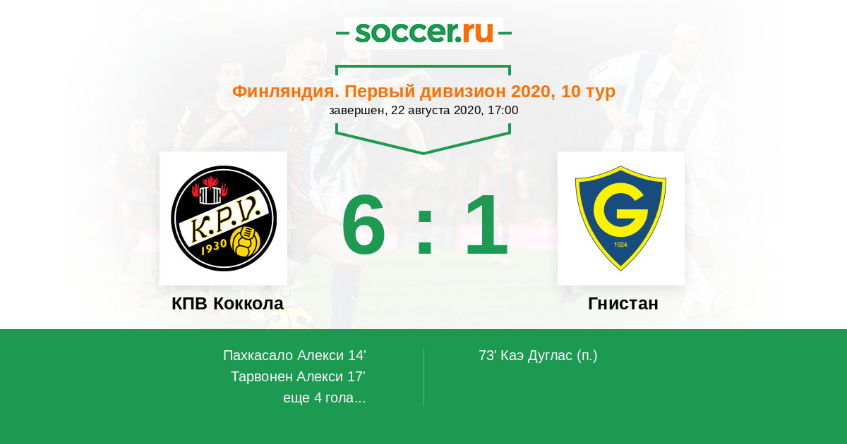 КПВ Коккола - Гнистан: обзор матча 22 августа 2020