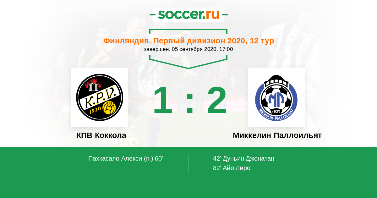 КПВ Коккола - Миккелин Паллоильят: обзор матча 5 сентября 2020