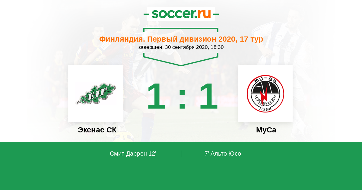 Экенас СК - МуСа: обзор матча 30 сентября 2020