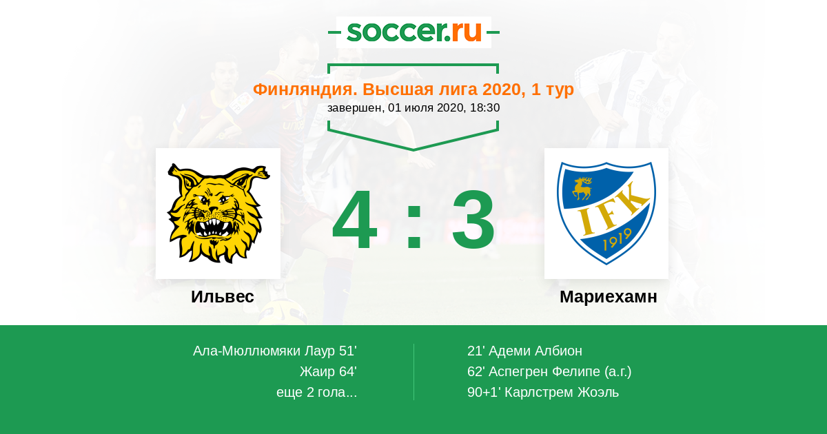 Ильвес - Мариехамн: обзор матча 1 июля 2020
