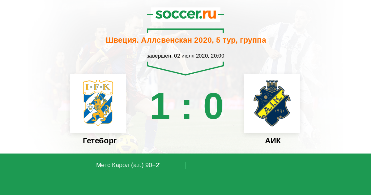 Гетеборг - АИК: обзор матча 2 июля 2020