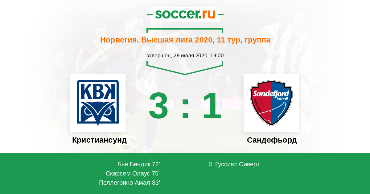 Кристиансунд - Сандефьорд: обзор матча 29 июля 2020