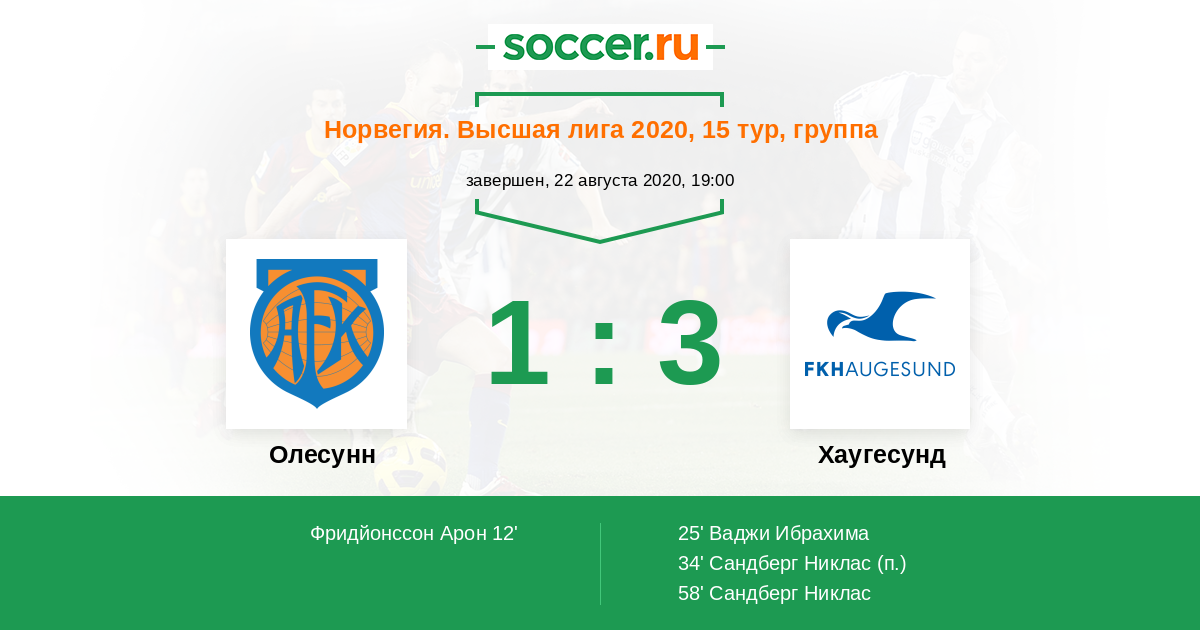 Олесунн - Хаугесунд: обзор матча 22 августа 2020