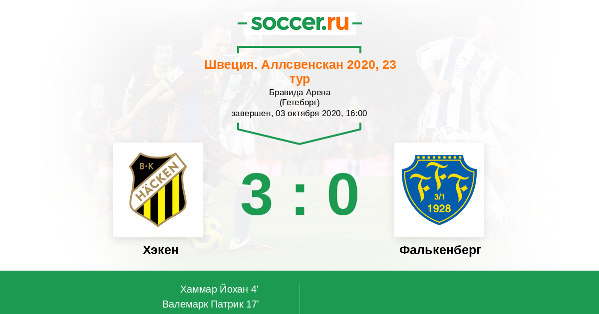 Хэкен - Фалькенберг: обзор матча 3 октября 2020