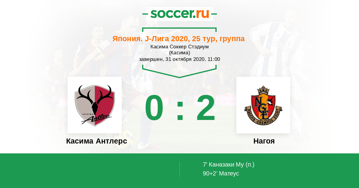 Касима Антлерс - Нагоя: обзор матча 31 октября 2020