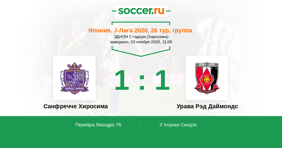 Санфречче Хиросима - Урава Рэд Даймондс: обзор матча 3 ноября 2020