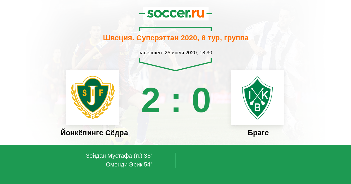 Йонкёпингс Сёдра - Браге: обзор матча 25 июля 2020