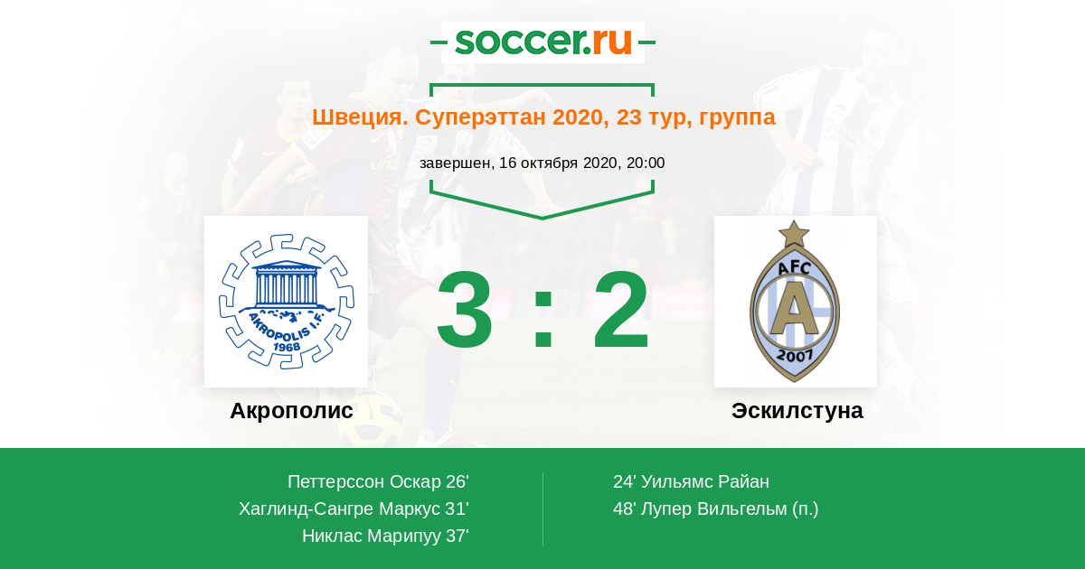 Акрополис - Эскилстуна: обзор матча 16 октября 2020