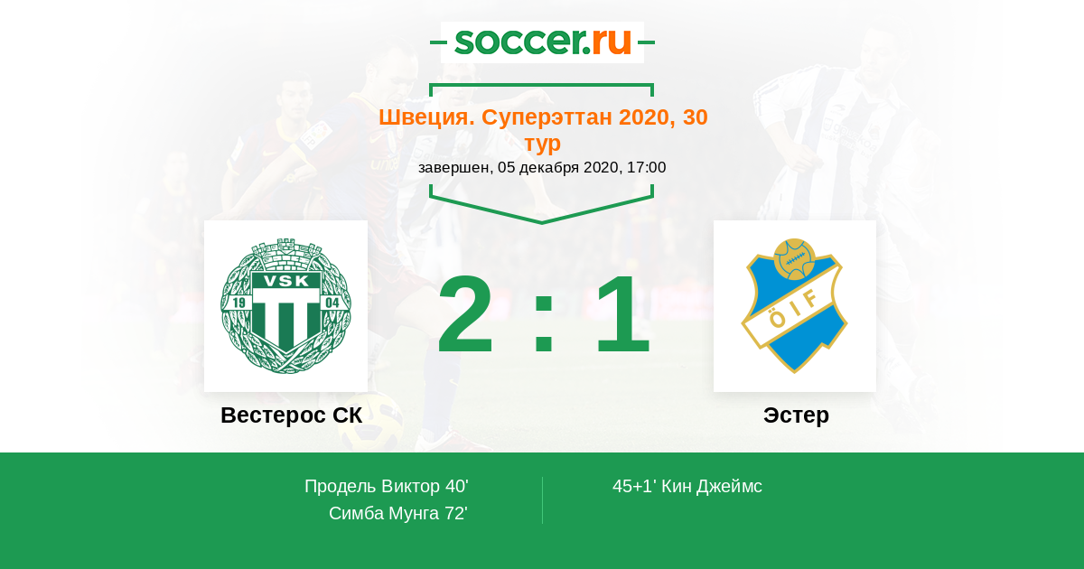 Вестерос СК - Эстер: обзор матча 5 декабря 2020