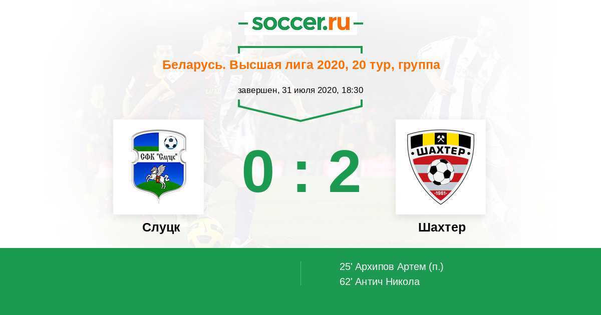 Слуцк - Шахтер: обзор матча 31 июля 2020