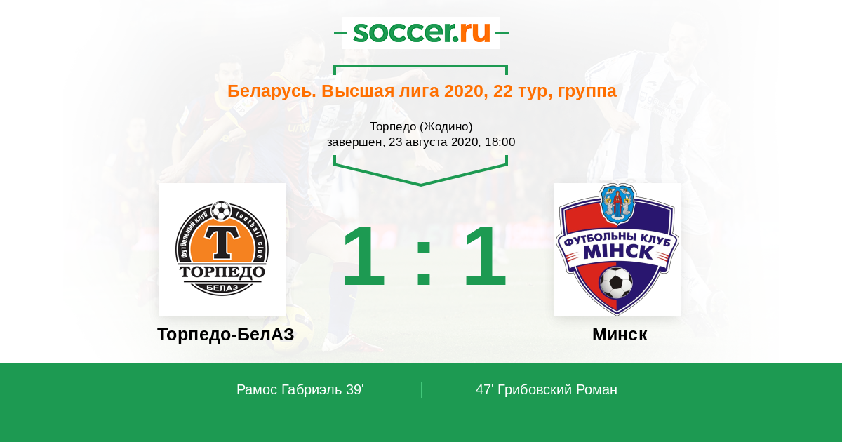 Торпедо-БелАЗ - Минск: обзор матча 23 августа 2020