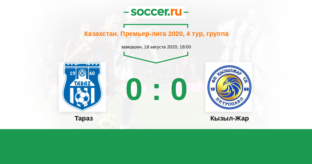 Тараз - Кызыл-Жар: обзор матча 18 августа 2020