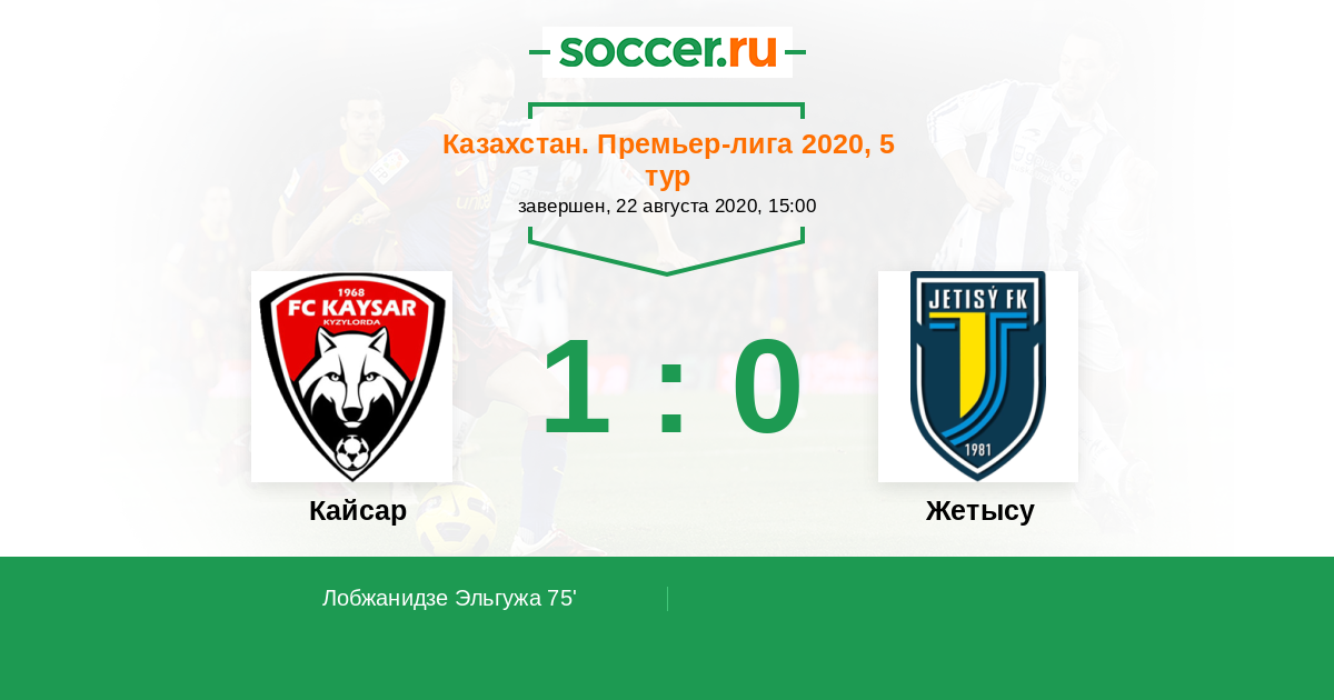 Кайсар - Жетысу: обзор матча 22 августа 2020