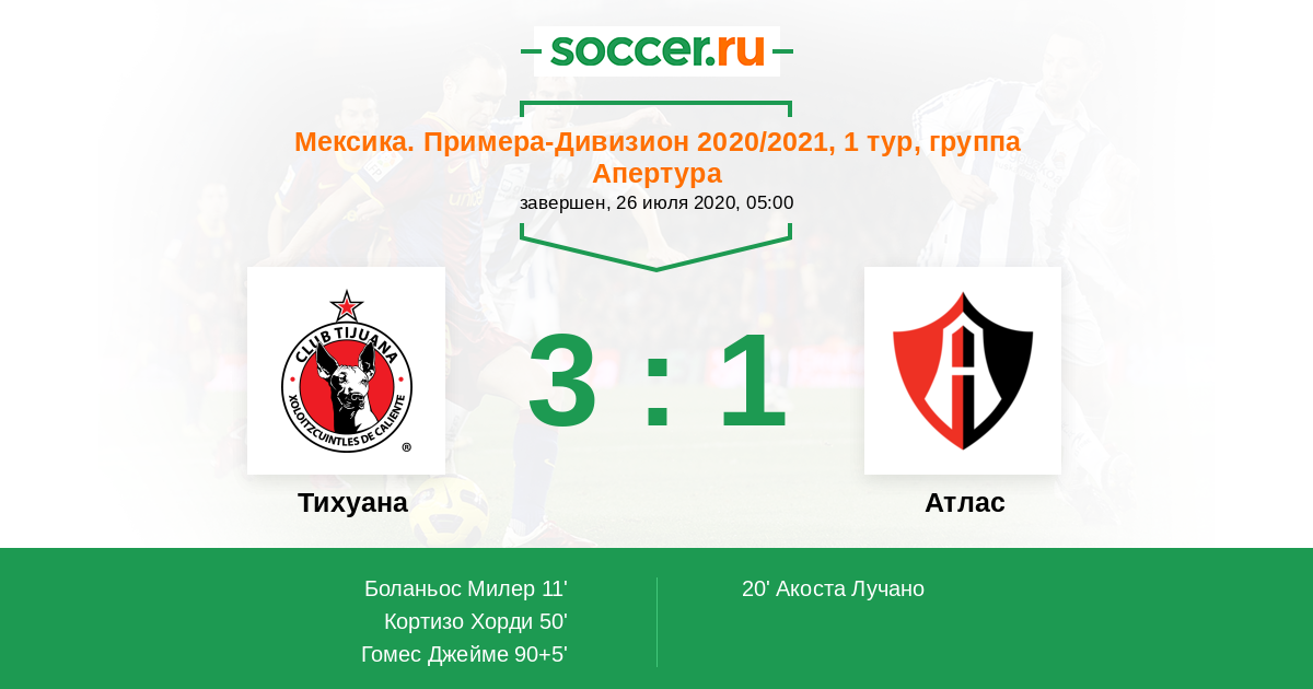 Тихуана - Атлас: обзор матча 26 июля 2020